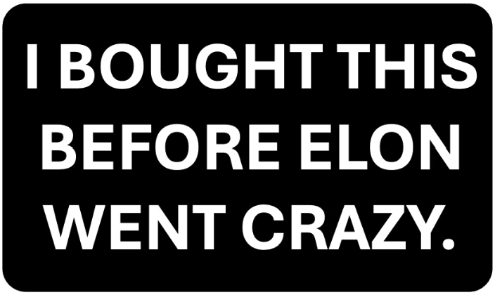 If you live in the USA you’ve seen the bumper sticker, numerous times. You’ve pulled up behind a Tesla and there in bold font is a simple but striking message staring back at you in traffic: ‘I bought this before Elon went crazy.’